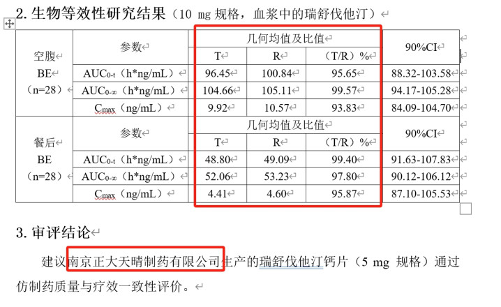网文作者针对瑞舒伐他汀钙片的两家生产企业南京正大天晴与LekPharmaceuticalsd.d的通过仿制药一致性评价的生物等效性试验数据进行了对比,其参比制剂为阿斯利康生产,商品名「可定」。在对比时发现:两家企业的生物等效性试验数据一摸一样。