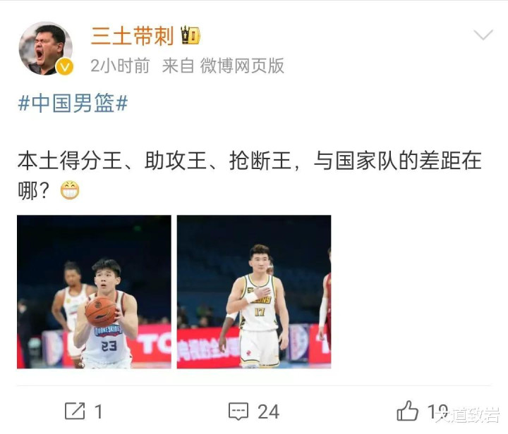 另外,媒体人三土带刺也充满疑惑的发问:“本土得分王(林葳)、助攻王、抢断王(孙铭徽),与国家队的差距在哪?”